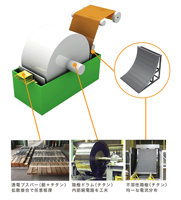 本公司代理日本AKAHOSHI製造的電解銅箔製造設備,包括陰極輥、陽極架台、鈦包銅傳電條。可配合客戶之生產線量身訂作全新產品或提供產品之改造或補修。