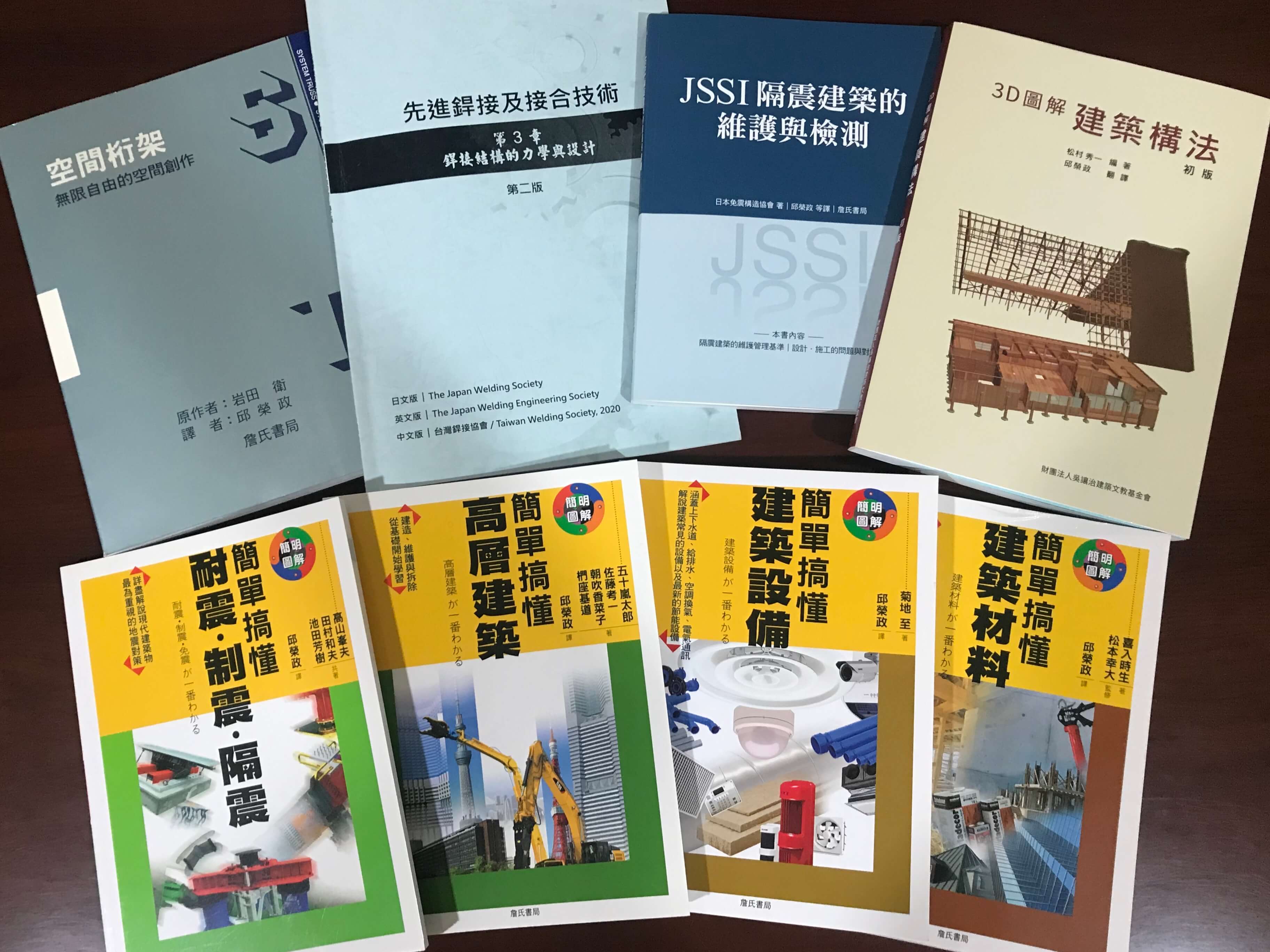 「3D圖解 建築構法」邱榮政 譯 / 財團法人吳讓治建築文教基金會 (2020年)「先進銲接及接合技術 第三章 銲接結構的力學與設計」邱榮政 譯 / 台灣銲接協會(2020年)